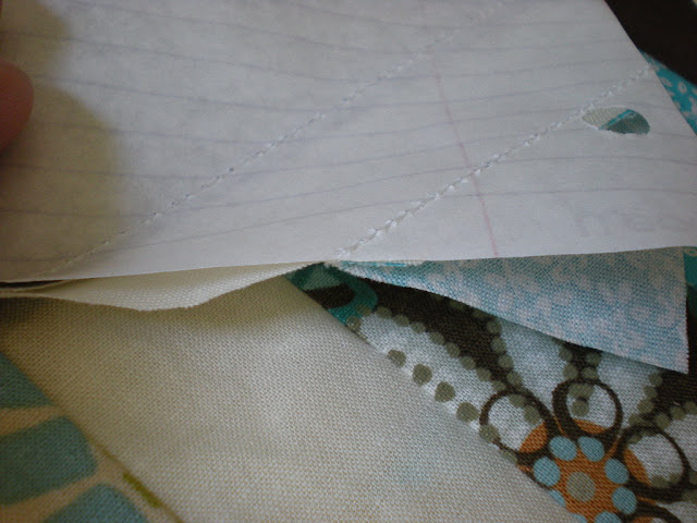 - Tighten up the stitch length on your machine at this point. It's not critical, but it is easier to rip the paper off the backs of these if the stitches are closer together. Not crazy small, just a few notches smaller than normal.